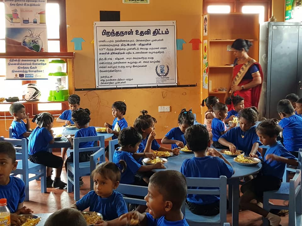 பிள்ளை நிலா முன்பள்ளியில் கல்வி பயிலும் 27 மாணவர்களிற்கும் 3ஆசிரியர்களிற்கும் இணைப்பாளரிற்கும் சாரா எவலின் நிவேதிதன் (சுவிஸ்); தனது மாமனார் ராஜ்-விதுரன் இன் பிறந்த தினத்தினை முன்னிட்டு விது நம்பிக்கை நிதியத்தினூடாக மதிய போசனம் வழங்கினார்.